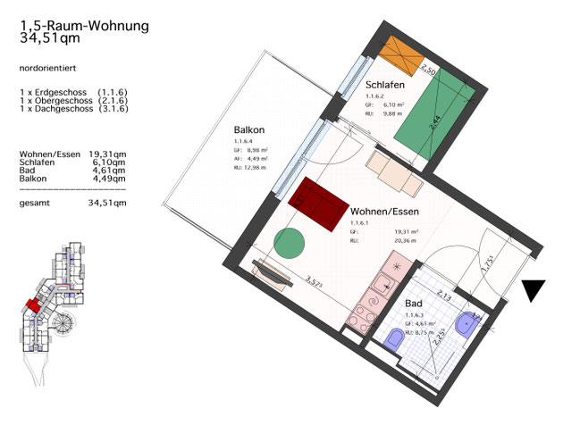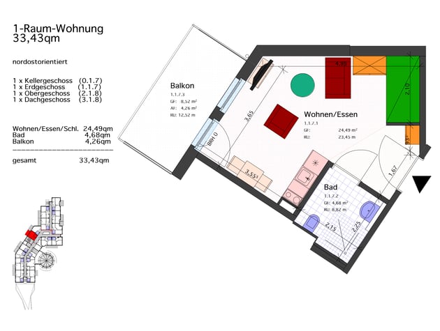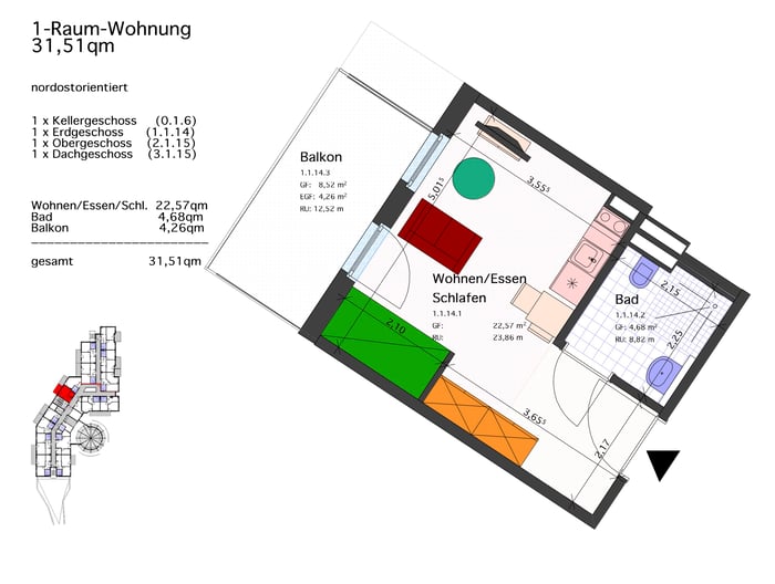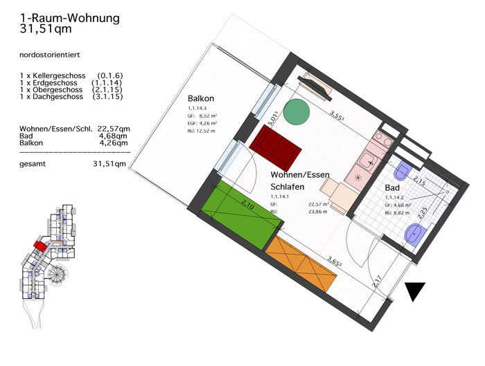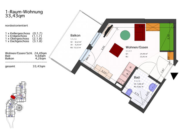 1 -Raum-Wohnung 31,51 qm mit Balkon: