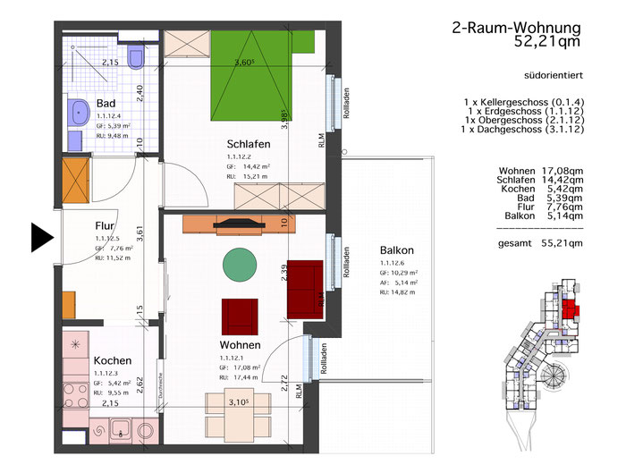 2-Raum-Wohnung 52,21 qm mit Balkon: