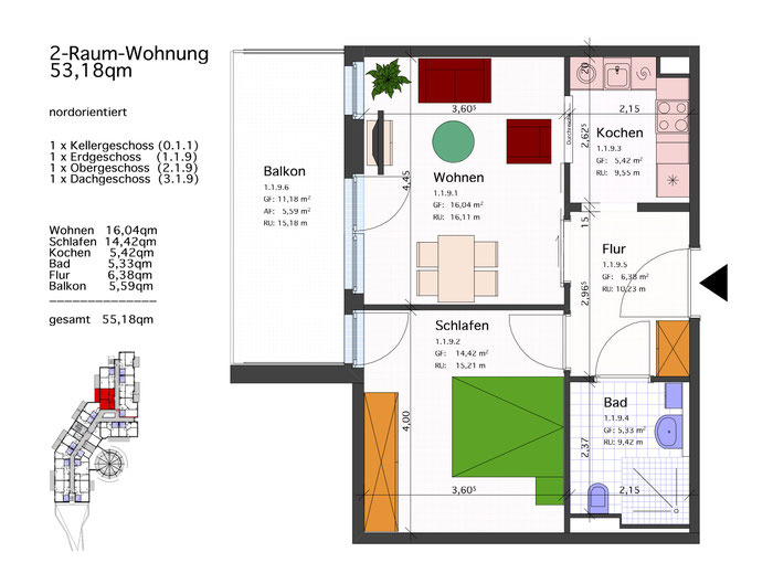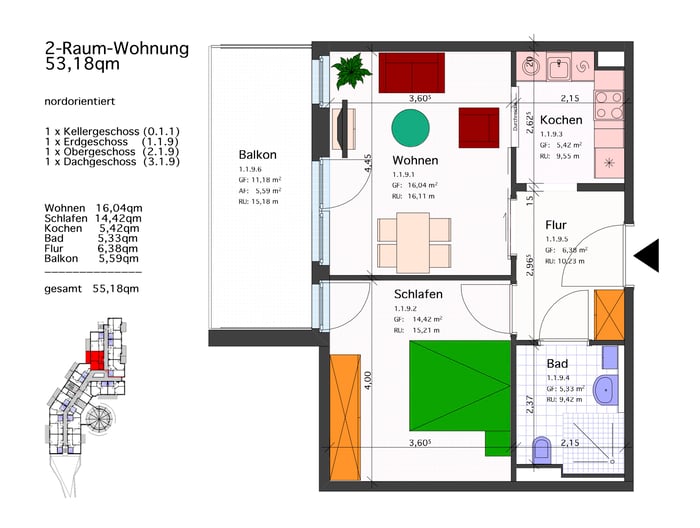 2-Raum-Wohnung 53,18 qm mit Balkon: