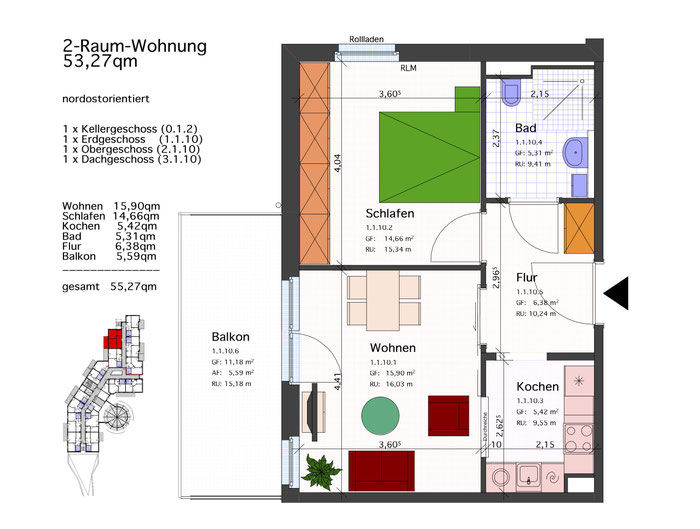 2-Raum-Wohnung 53,27 qm mit Balkon: