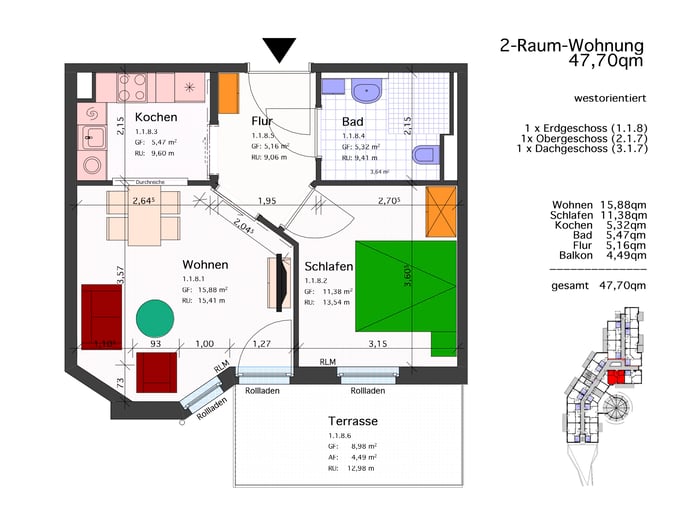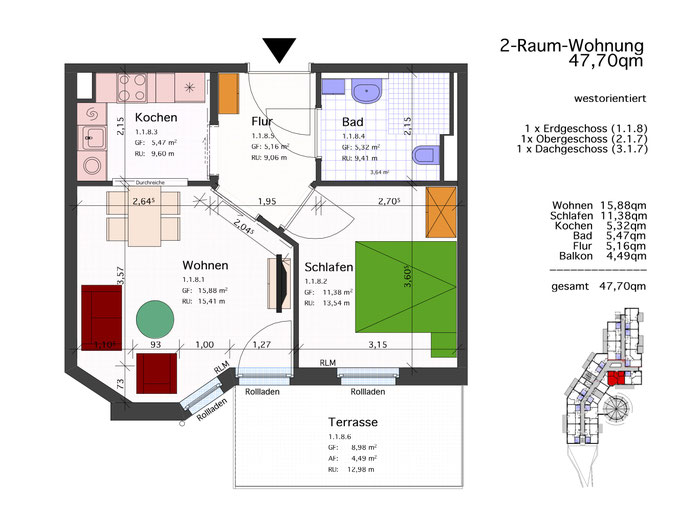 2 -Raum-Wohnung 47,70 qm mit Balkon: