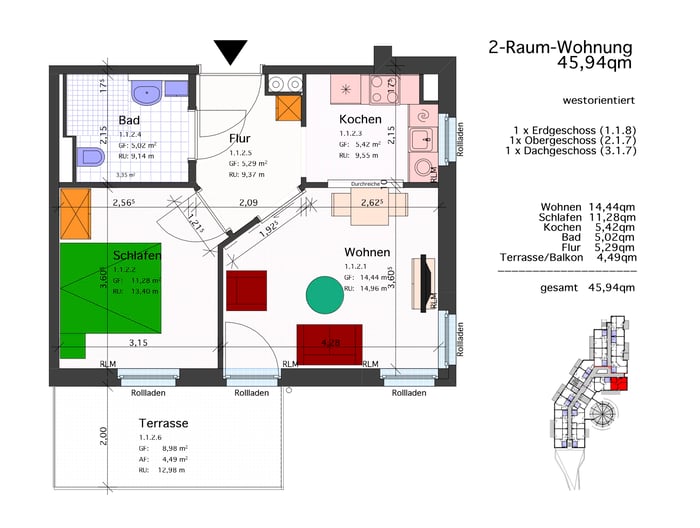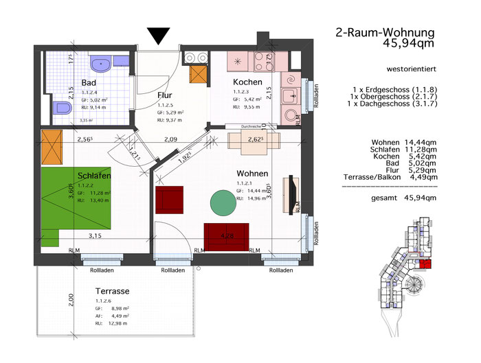 2 -Raum-Wohnung 45,94 qm mit Balkon: