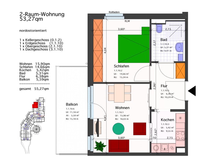 2-Raum-Wohnung 55,76 qm mit Balkon: